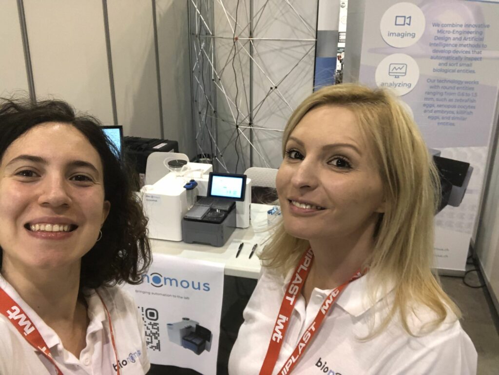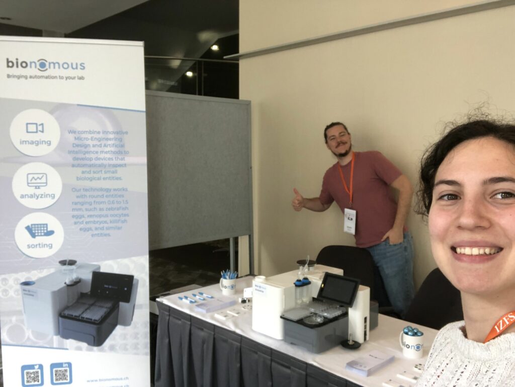 Ana Hernando, COO & co-founder, and Cristina Mills, Sales rep., at the Swiss Zebrafish Meeting